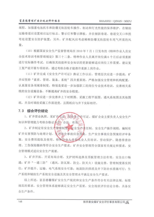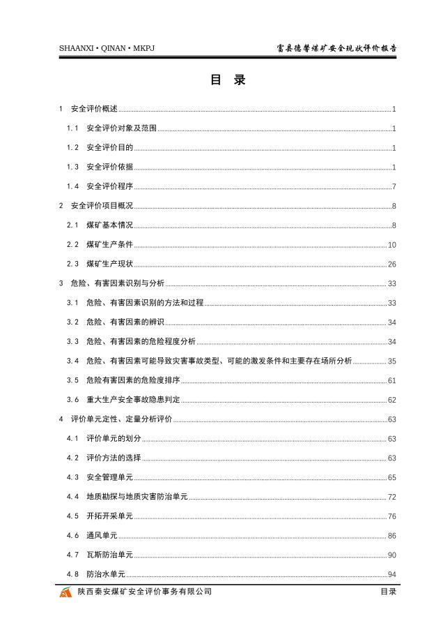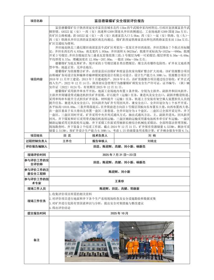 富县德馨煤矿安全现状评价报告 - 评价项目信息公开 - 陕西秦安煤矿安全评价事务有限公司