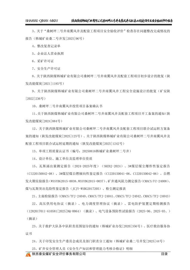 陕西陕煤韩城矿业有限公司桑树坪二号井南翼风井及配套工程建设项目安全验收评价报告 - 评价项目信息公开 - 陕西秦安煤矿安全评价事务有限公司
