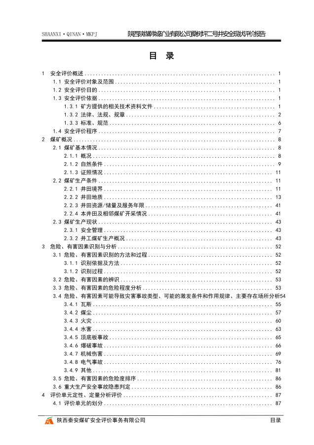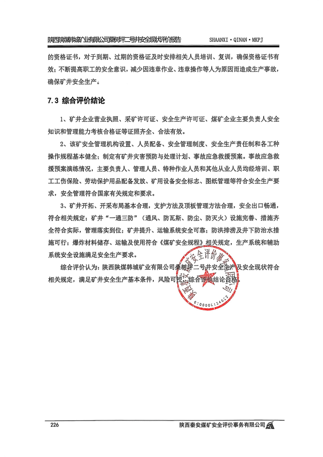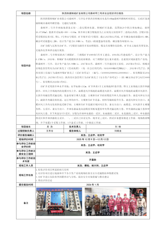 陕西陕煤韩城矿业有限公司桑树坪二号井安全现状评价报告 - 评价项目信息公开 - 陕西秦安煤矿安全评价事务有限公司