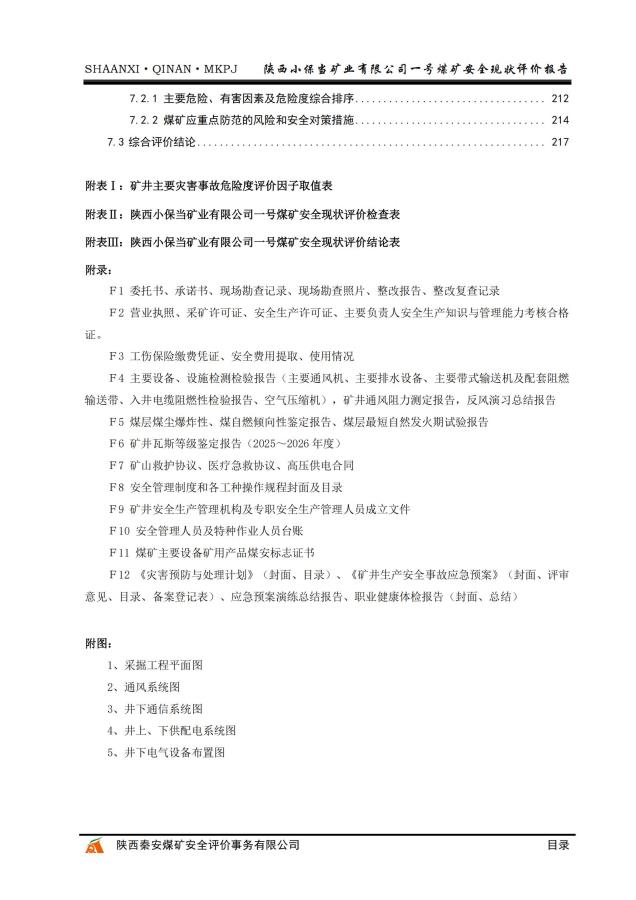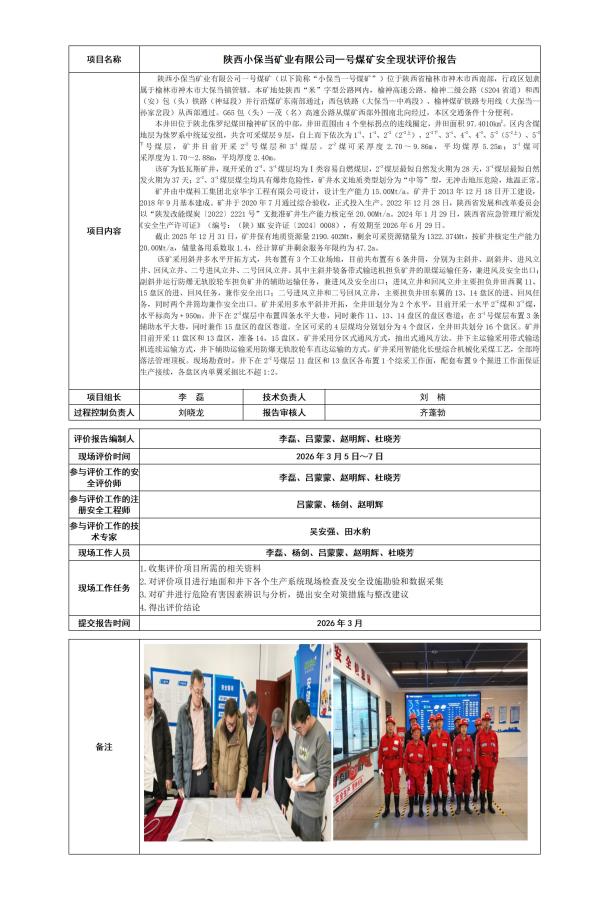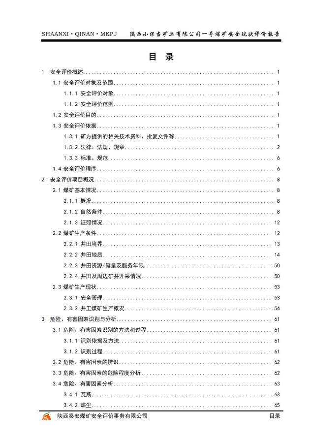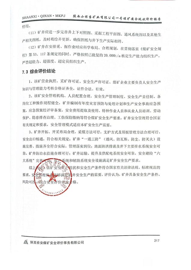 陕西小保当矿业有限公司一号煤矿安全现状评价报告 - 评价项目信息公开 - 陕西秦安煤矿安全评价事务有限公司