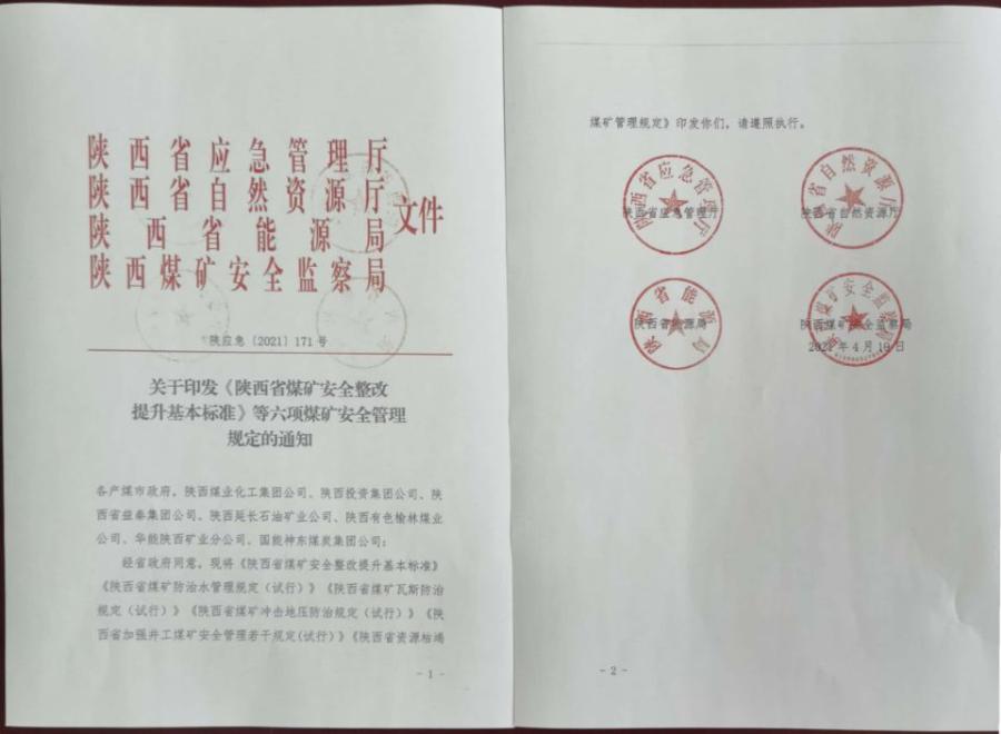 第二条 煤矿安全生产规章制度、安全生产管理机构、从业人员配备符合《陕西省加强井工煤矿安全管理若干规定》,各项作业规程、安全措施健全,落实到位。煤矿入井人数符合《煤矿井下单班作业人数限员规定(试行)》,足额提取和使用安全生产费用,应急管理符合规定。