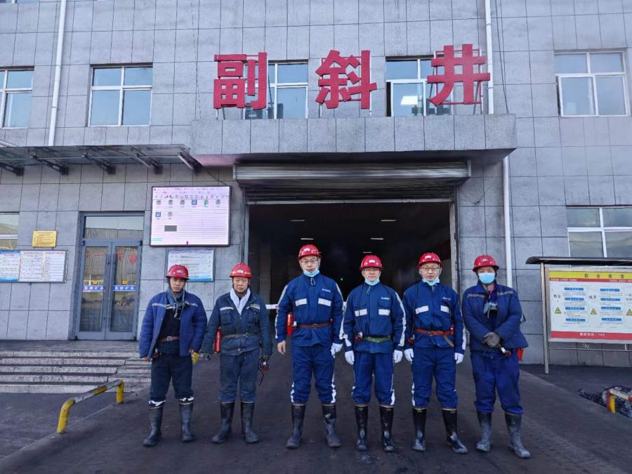 矿井采用斜井多水平开拓,工业场地内共布置3条井筒,分别为主斜井、副斜井和回风斜井。主斜井井筒装备带式输送机承担矿井原煤提升任务,兼进风和安全出口。副斜井井筒运行防爆无轨胶轮车承担矿井辅助运输,兼进风和安全出口。回风斜井为矿井专用回风井承担全矿井的回风任务,兼作安全出口。全井田划分为两个水平,一水平开采3-1、4-2、4-3煤层,水平标高+1074.0m;二水平开采5-2煤层,水平标高+1022.0m,一水平已开采完毕,系统已封闭,现开采二水平5-2煤层。主斜井井筒落底后在5-2煤层中近东西向布置5-2煤主运大巷、5-2煤辅运大巷、5-2煤回风大巷,5-2煤辅运大巷、5-2煤回风大巷分别通过5-2煤辅运煤门、5-2煤回风煤门与副斜井和回风斜井联络。全井田分水平划分成2个盘区,即一水平为一盘区,二水平为二盘区。现场勘查时,正在开采二盘区。矿井采用中央并列式通风方式,抽出式通风方法,主、副斜井进风,回风斜井回风。井下主运输采用带式输送机连续运输,辅助运输采用防爆无轨胶轮车直达运输。井下采煤工作面采用走向长壁后退式综合机械化采煤法,全部垮落法管理顶板。现场勘查时,井下装备1个综采工作面和2个掘进工作面达到矿井核定生产能力。截止2023年12月31日,矿井保有资源储量33.431Mt,剩余可采储量15.342Mt,按矿井设计生产能力1.20Mt/a,考虑1.3的储量备用系数计算,矿井剩余服务年限9.8a。