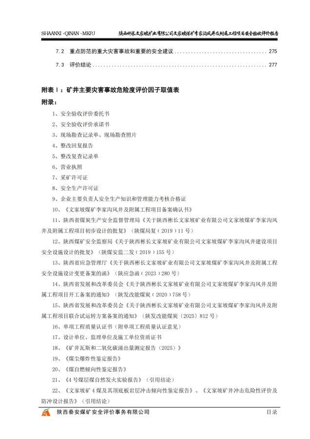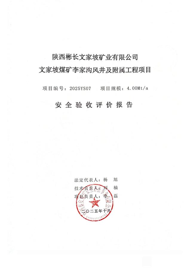 陕西彬长文家坡矿业有限公司文家坡煤矿李家沟风井及附属工程项目安全验收评价报告