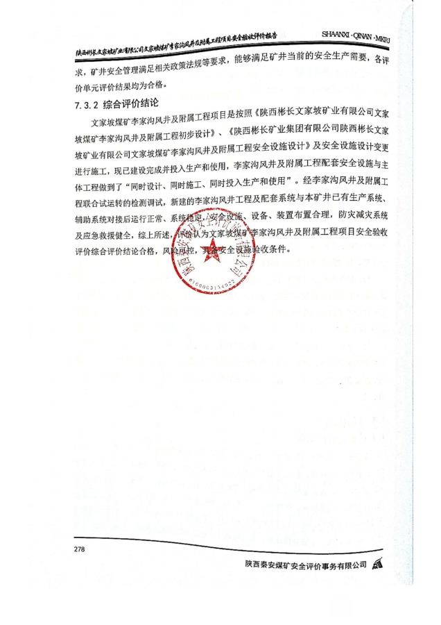 陕西彬长文家坡矿业有限公司文家坡煤矿李家沟风井及附属工程项目安全验收评价报告 - 评价项目信息公开 - 陕西秦安煤矿安全评价事务有限公司