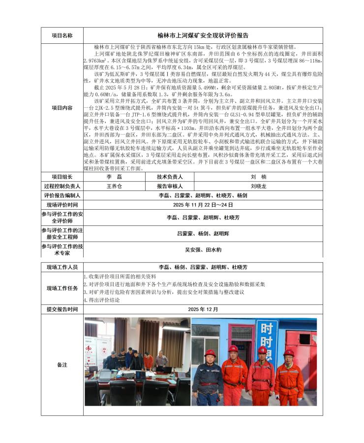 榆林市上河煤矿现状评价报告