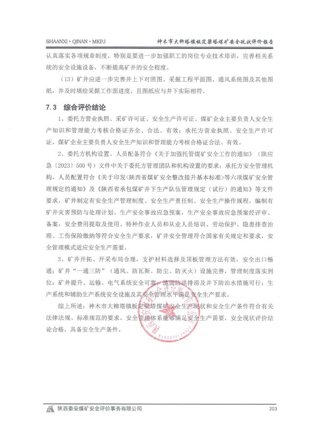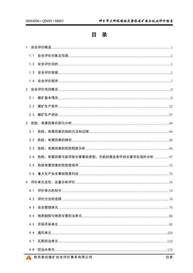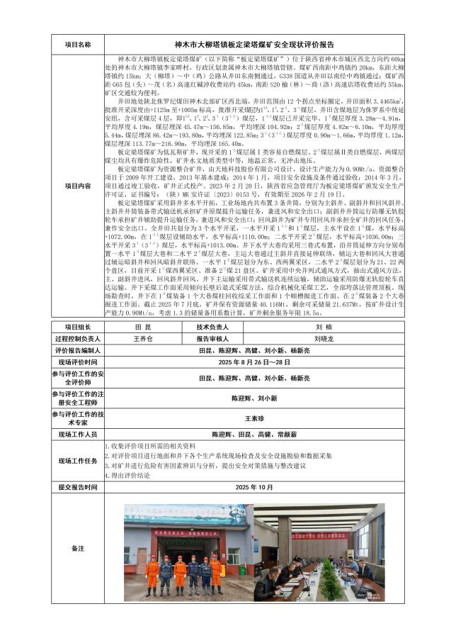 神木市大柳塔镇板定梁塔煤矿安全现状评价报告 - 评价项目信息公开 - 陕西秦安煤矿安全评价事务有限公司