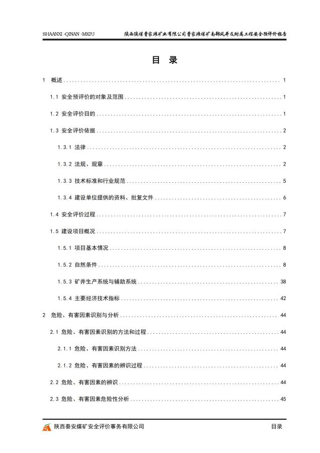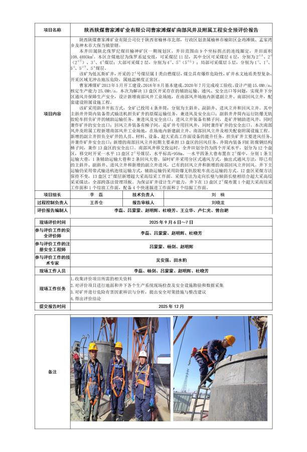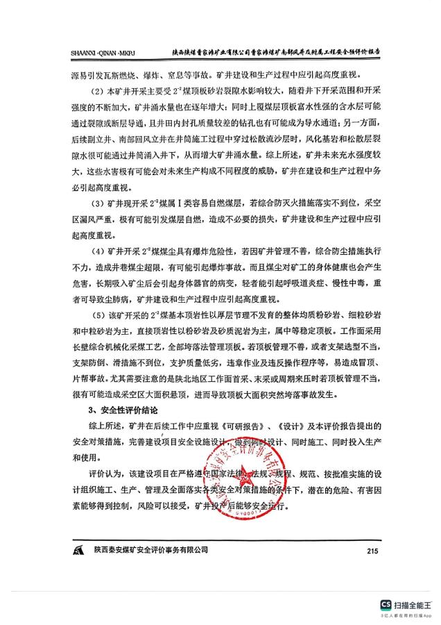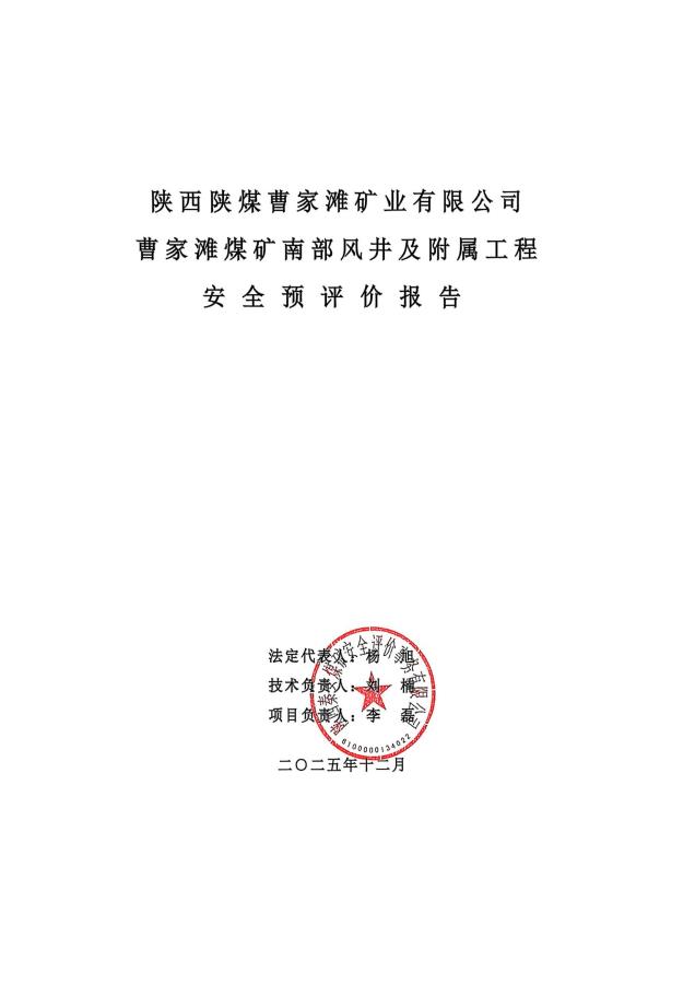 陕西陕煤曹家滩矿业有限公司曹家滩煤矿南部风井及附属工程安全预评价报告 - 评价项目信息公开 - 陕西秦安煤矿安全评价事务有限公司