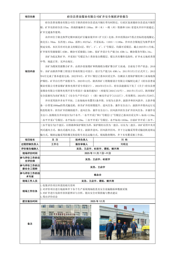 府谷县普泉煤业有限公司矿井安全现状评价报告