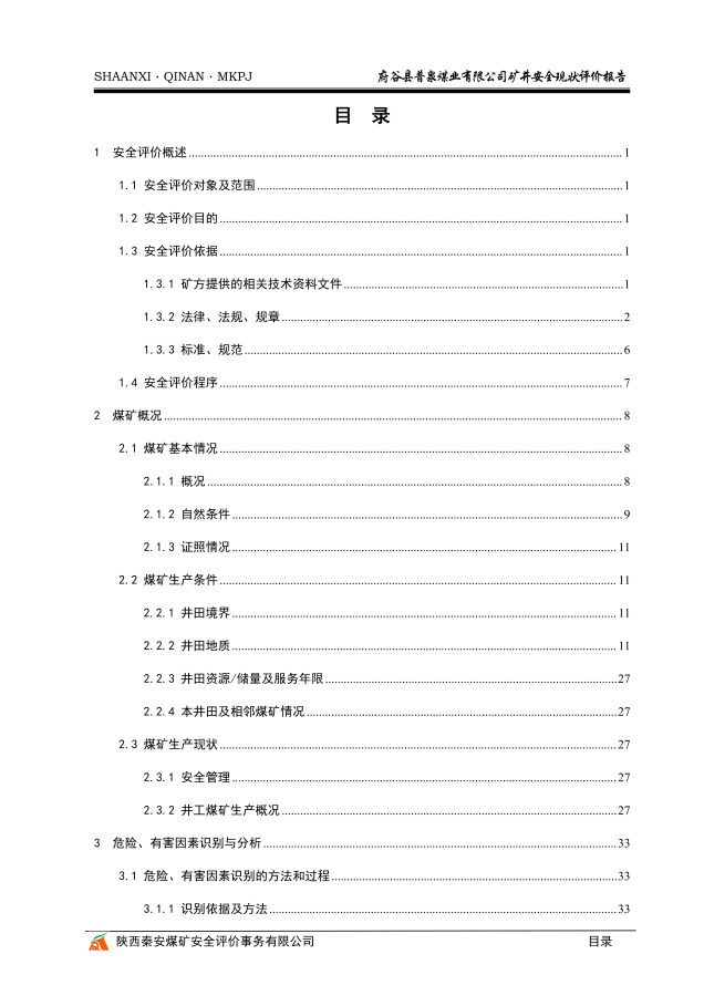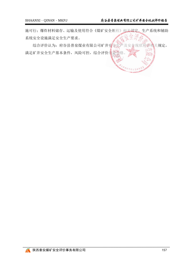 府谷县普泉煤业有限公司矿井安全现状评价报告 - 评价项目信息公开 - 陕西秦安煤矿安全评价事务有限公司