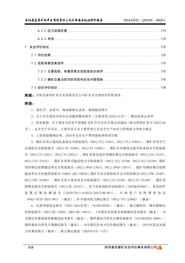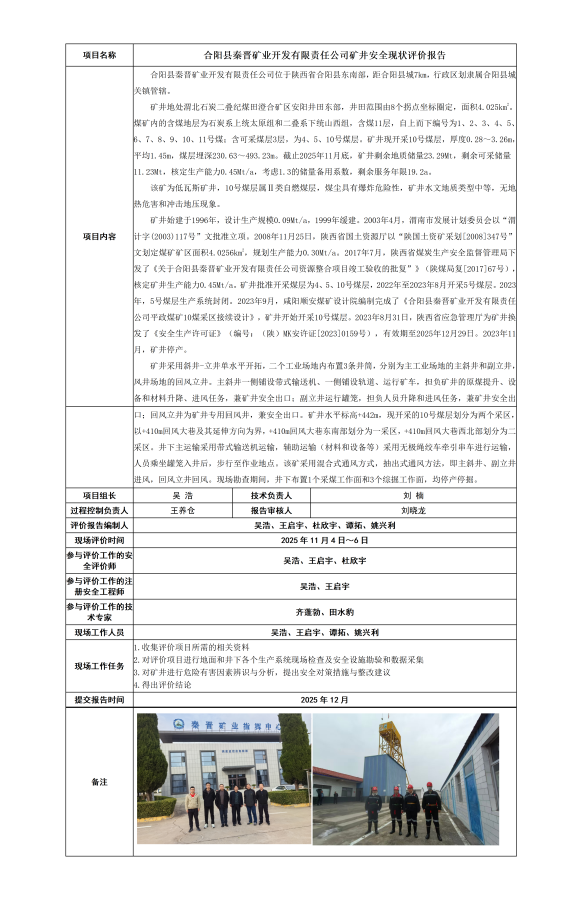 合阳县秦晋矿业开发有限责任公司矿井安全现状评价报告 - 评价项目信息公开 - 陕西秦安煤矿安全评价事务有限公司