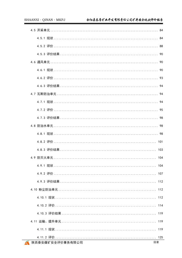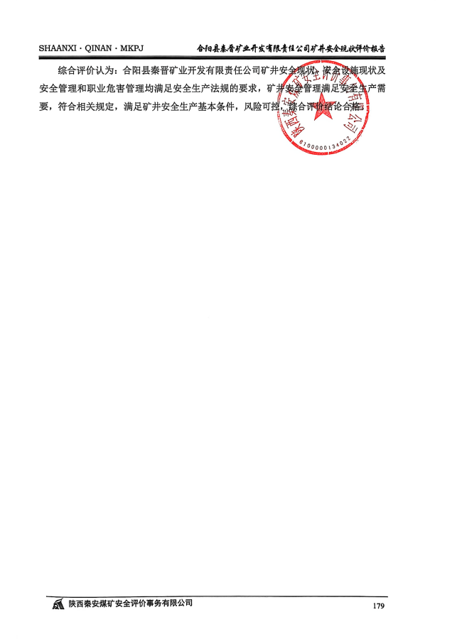 合阳县秦晋矿业开发有限责任公司矿井安全现状评价报告